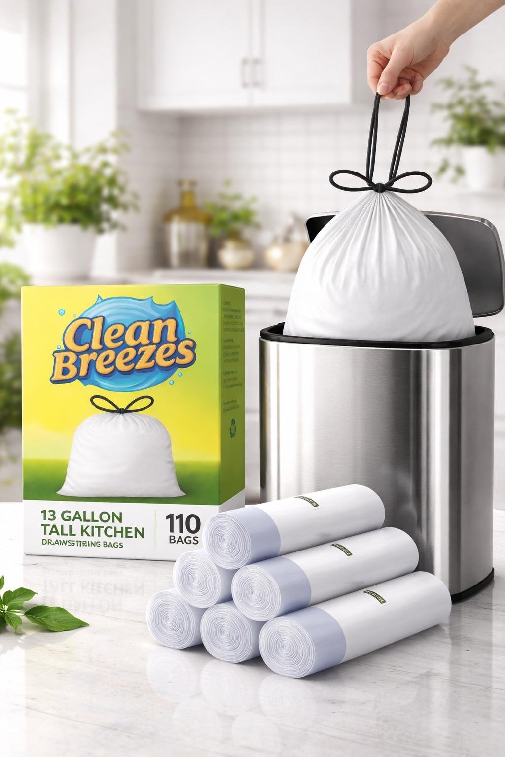 Keep your kitchen clean and mess-free with 13 Gallon Tall Kitchen Drawstring Trash Bags, designed for strength, convenience, and everyday reliability. These bags fit most standard tall kitchen trash cans and provide dependable performance for daily household waste.